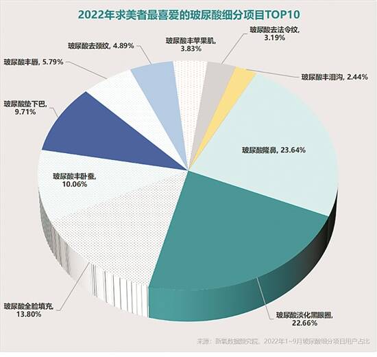 数据显示,透明质酸用于抗衰需求从2021年的23%上升至2022年的40%,在透明质酸三大功效需求中占比最高。