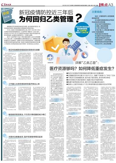 2023年1月8日起新冠病毒感染由“乙类甲管”调整为“乙类乙管”