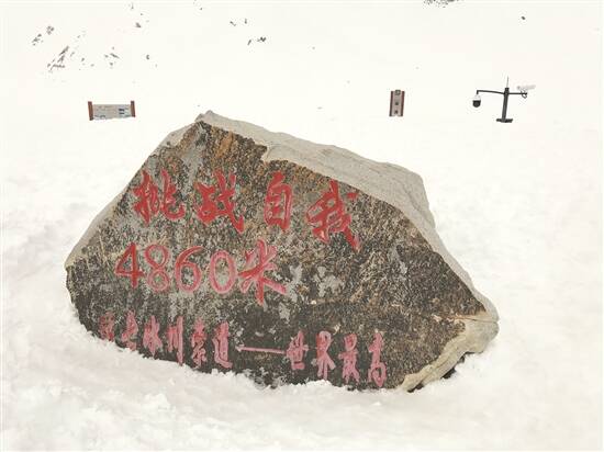 冰雪越来越厚,温度越来越低,空气越来越稀薄,冰川雪顶越来越近。缆车倏地减速,我们终于登顶海拔4860米的达古冰川之巅。走出机房,果然如同走进了广寒宫。脚下,是一条弯曲狭窄通向冰川深处的雪路。穿过雪墙双峙而形成的冰雪隧道,极目远眺,依然是无边无尽的冰雪世界。那些白,耀眼、炫目,似与云霄相衔连,惟余莽莽,让人难以辨清天和地、雪和云。