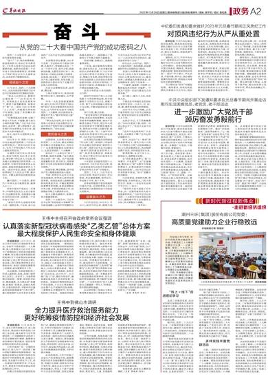 开设线上学习专栏、针对不同党员特点确定学习内容、开展党的二十大精神主题征文比赛……记者了解到,党的二十大召开以来,三环集团党委把学习宣传贯彻党的二十大精神作为当前的首要政治任务,将学习宣传贯彻党的二十大精神与公司发展实际相结合,求真务实抓落实,确保党的二十大精神落地见效,让党旗在企业高高飘扬。