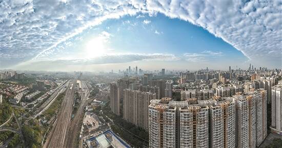 羊城晚报讯 记者梁怿韬摄影报道:12月27日早上,部分早起的广州市民抬头望天,发现广州的天空上演“一半天空一半云”的景观。据悉,该景观的成因与干冷和暖湿两股气团在广州上空交汇有关。