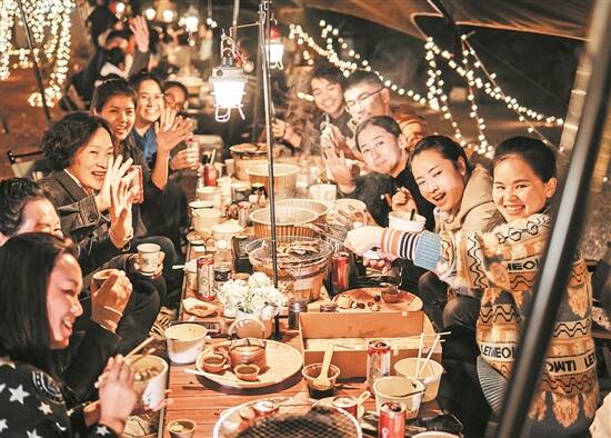 位于珠海横琴的星乐度露营小镇即将开启一场跨年元旦派对,有锥形喷泉烟花、仙女棒、篝火、跨年音乐会、美食体验……今年的跨年派对将给每桌用户赠送“围炉煮茶与热红酒”——冬日的午后,三五好友围桌而坐,一起喝茶说笑、迎接新年,当真可谓惬意。