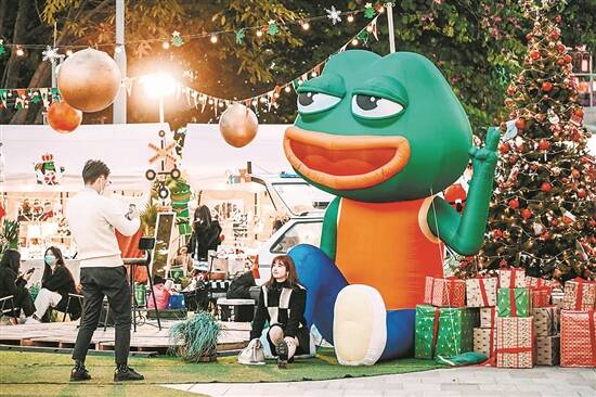 时值岁末,佛山岭南天地携手超人气IP悲伤蛙PEPE推出了“开心无闭翳,一起齐蛙蛙”迎新主题展,用冬日微度假欢聚四大场景开启别样的跨年体验。在现场,可见逗趣的PEPE蛙家族足迹遍布不同角落,尤其是舞林大会场景将还原佛山古镇逢年过节热闹的舞狮盛况,PEPE蛙将化身南狮弟子,一跃一跳,尽显佛山本土民俗特色。