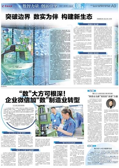 ——企业微信生态能力已覆盖97个行业,超过八成的中国500强企业选择企业微信。其中,在新能源车领域,包括比亚迪、极氪、广汽埃安、“蔚小理”等中国新能源汽车2022年1月-10月交付量十强已在供应链升级或客户服务中全面启用企业微信。