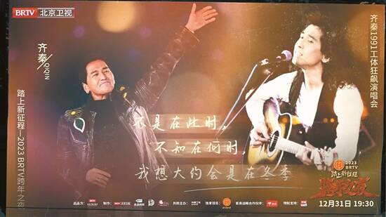 工体的重新亮相,吸引了不少音乐圈的老炮儿前来道贺。这台晚会的开场曲来自“摇滚教父”崔健的《一无所有》。1986年5月9日,崔健在北京工人体育馆举行的百名歌星演唱会上演唱了《一无所有》,宣告中国摇滚乐的诞生。在本届北京卫视跨年晚会上,崔健回到工体,当他唱出“我要给你我的追求,还有我的自由。可你总是笑我,一无所有”时,不少观众的心又被摇滚点燃!此外,齐秦、沙宝亮等老炮儿,也都是时隔多年重回工体唱歌。在台北分会场,赵传演唱了《给所有知道我名字的人》《我是一只小小鸟》,再次带来时代回忆。有意思的是,不少新摇滚人也加入其中,GALA乐队、新裤子乐队带来了嗨翻全场的歌曲,如《追梦赤子心》《生活因你而火热》等。