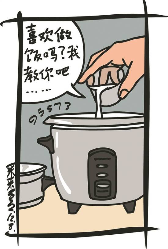 这天,冬丽在前面忙着打彩票,吴焱在后面做饭,孩子站在锅边目不转睛地看着。“喜欢做饭吗?我教你吧……”吴焱发现儿子这么喜欢做饭,灵机一动,决定尽早培养“接班人”。首先从淘米煮饭开始,放多少米、米淘洗几次、米与水的比例、电饭煲怎么用,吴焱教得热情洋溢,孩子学得津津有味。