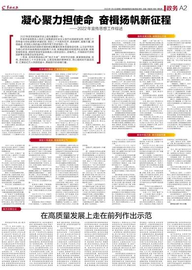2022年是党和国家历史上极为重要的一年。一年来,面对风高浪急的外部环境和艰巨繁重的改革发展稳定任务,在以习近平同志为核心的党中央坚强领导下,广东认真落实“疫情要防住、经济要稳住、发展要安全”的重要要求,统筹疫情防控和经济社会发展,统筹发展和安全,有力应对超预期因素冲击,经济发展稳中提质,国家战略深入实施,科技产业动能释放,城乡区域更趋协调,群众生活得到有效保障,经济社会大局保持稳定。从1年看5年看10年,广东经济之所以能持续健康发展,就是因为牢牢把握高质量发展这一根本要求,持续推动质量变革、效率变革、动力变革。习近平总书记明确指出,贯彻新发展理念、推动高质量发展是广东的根本出路。学习贯彻党的二十大精神,认清广东所处历史方位,我们看得更加清楚,总书记为广东指明的根本出路,也是广东实现现代化的唯一出路。奋进新征程,全省上下要深入贯彻总书记、党中央决策部署,坚持以习近平新时代中国特色社会主义思想特别是习近平经济思想为指导,牢牢把握高质量发展的正确方向,拿出走在前列的精气神,强化当好示范的历史主动,探索新路径,激发新动能,实现新突破,勃发新气象,在高质量发展中闯出一条新路来。
