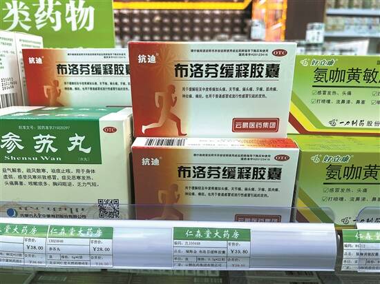 在位于越秀区淘金东路的仁森堂大药房,记者看到,一款布洛芬片的价格为38元12片,一款布洛芬缓释胶囊的价格为39.8元22粒,一款对乙酰氨基酚片的价格为35元20片。蒙脱石散塞满了一格货架。店员表示,这些药品目前供应量充足。