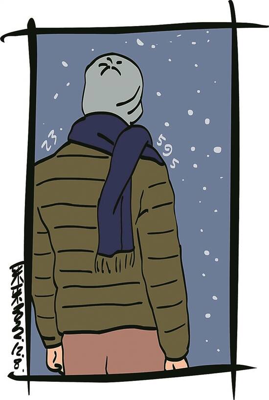 入夜后的天,阴沉沉的,北风裹挟着雪花纷纷而下。他一动不动地站在那儿,心情像天气一样寒冷、低沉,久久难以平息,任凭风雪扑打着脸面……