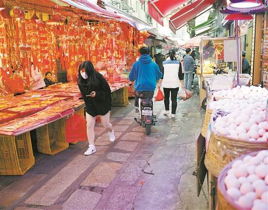 新年一早,记者“跑街”走入广州的街头巷尾,看到上街的街坊都戴着口罩,碰面时,微笑地打个招呼:“早晨!饮咗茶冇?”广州人冬天为了保暖,多穿黑、灰、红颜色的羽绒服,似乎对穿着没多大讲究。然而,广州人对吃的要求是很讲究,早上市场买菜要“又平又靓又新鲜“,鲜活至上。