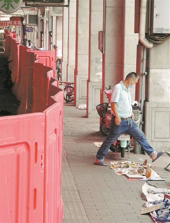 前不久,广州还到处是水马,在骑楼下面摆着,很有意思。当我拍到一位街坊从水马旁大步跨过,不急不缓,当场就有一种感觉:广州肯定能“大步槛过”。