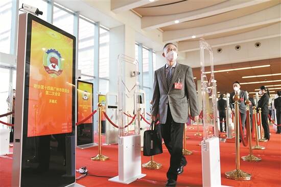 1月6日,政协第十四届广州市委员会第二次会议在白云国际会议中心开幕。图为政协委员们步入会场 羊城晚报记者 周巍 摄