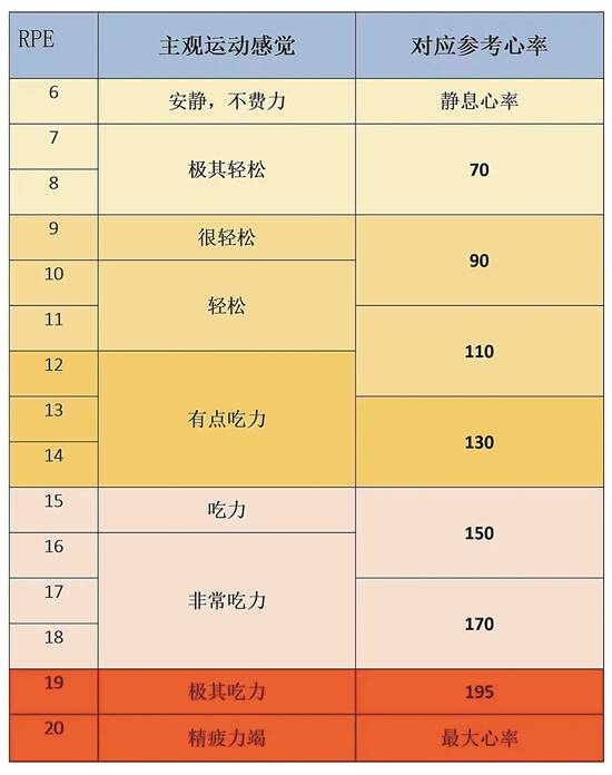 另外,也可以做一个6分钟步行试验Borg主观疲劳感知评估,采取6分钟步行试验,记录走的距离、自我感觉及心率。