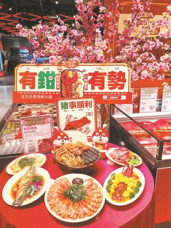 山姆今年则是发力高品质商品及礼盒套装。相关负责人告诉记者,在新年家宴聚会场景下,山姆会员乐于尝试来自全球的正宗风味,品尝新奇、独特的菜肴,因而山姆近期主推的“一鱼六吃”海鲜盛宴料理、面包烤羊腿、新西兰鹿肉礼盒,都受到会员的喜爱与追捧。