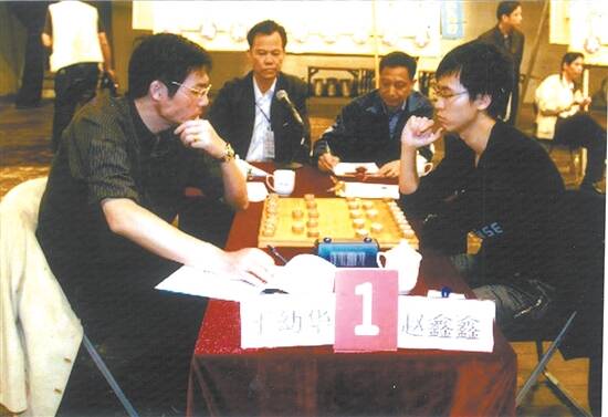 我有幸参加了2009年2月下旬举行的第29届“五羊杯”全国象棋冠军赛的裁判工作,并得到黄胜光老师的安排,23日晚上在广州文化公园中心台,为第一台浙江双雄于幼华与赵鑫鑫的对弈唱棋。第一次参加水平规格如此高级赛事,心情未免有点紧张,也由于经验不足,唱棋与中心台大棋盘挂棋出现脱节,后经前辈指点方回复正常。