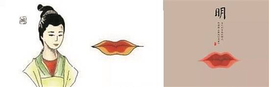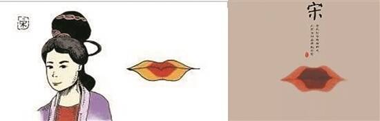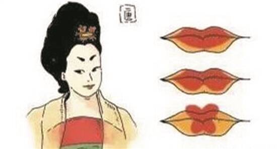 古代女子的唇妆样式在每个朝代都有不同的“流行款”——汉代女子妆容总体上相对简洁,通常使用上小下大近乎三角形的唇妆式样;魏晋时期唇妆样式演变成扇形;除了红色的朱唇外,南北朝时还兴起一种以乌膏染出的“嘿唇”,南朝徐勉《迎客曲》中便有“罗丝管,舒舞席,敛袖嘿唇,迎上客”;唐朝唇妆种类丰富,女子喜欢在唇上描出圆形、心形、鞍形等不同形状,甚至曾风靡过樱桃形和花朵形唇妆。历史上最为出名的“樱桃小口”就出自白居易的家伎樊素,因此有了“樱桃樊素口”的说法;宋朝的点唇样式比唐代少了,橙色点唇是主要流行色,北宋秦观《南歌子》中的“独倚玉阑无语点檀唇”,指的就是这种唇脂颜色;到明朝,唇妆又与魏晋时期有了相似之处,与现代的“咬唇妆”更为相似;清朝唇妆则主要有两种:一是上唇涂满,下唇只在中间点上一点,在宫廷中颇为流行;另一种则是比较复杂的花瓣唇。