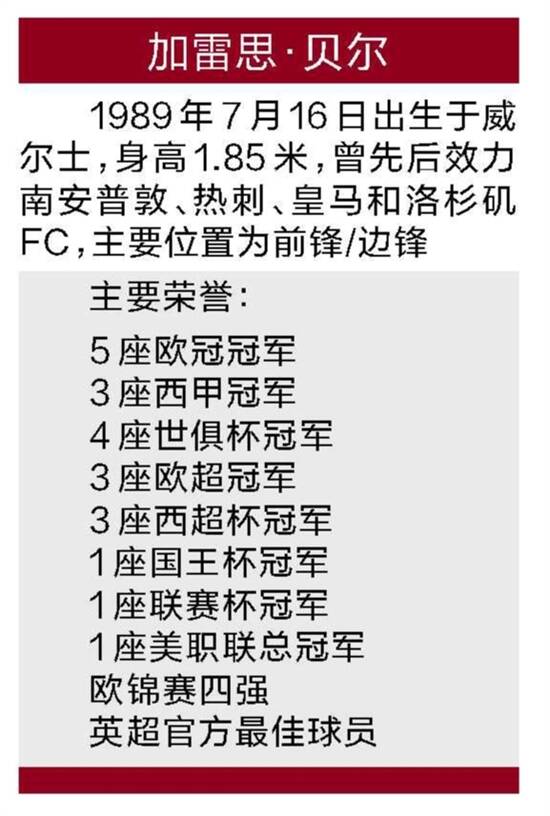 结果,热刺击败了曼联和阿森纳等豪门俱乐部,花了500万英镑将18岁的贝尔收入麾下。不过从2007年至2010年的大部分时间里,贝尔是在替补席上度过的,甚至创下了连续24次替补上阵的奇观。直到2001年在足总杯第三轮对彼得堡的比赛,他才被委以左边锋的重任首发登场,这成了他起飞的起点。到2012-2013赛季结束之时,热刺虽然仍与英超前四无缘,但贝尔却射入26球并获评英超联赛最佳球员、英格兰足球先生和球员协会评选出的赛季最佳球员以及最佳新人等多项殊荣。这也意味着热刺已经难养贝尔这条大鱼,他离开的时间也临近了。