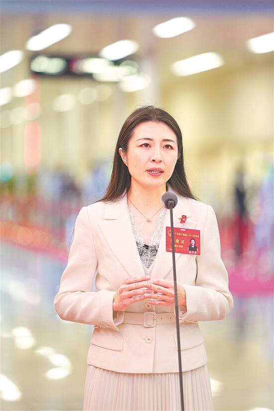 在回答羊城晚报记者抛出的文化领域的问题时,省人大代表、广东省文化和旅游志愿者总队茂名分队秘书处秘书长、茂名市文化馆文旅志愿者办公室主任袁湄,讲述了“把最好的精神食粮带到群众身边”的故事。袁湄建议,加大推动粤西地区“冼夫人”文旅产业和文旅制造业的创新发展,打造具有地域特色的文创产业;加大力度创建粤东粤西粤北地区文艺精品创作繁荣区,促使全省文艺人才队伍建设“一盘棋”,打造融入粤港澳大湾区建设的艺术精品,让“艺术+非遗+文创产业”走得更远。