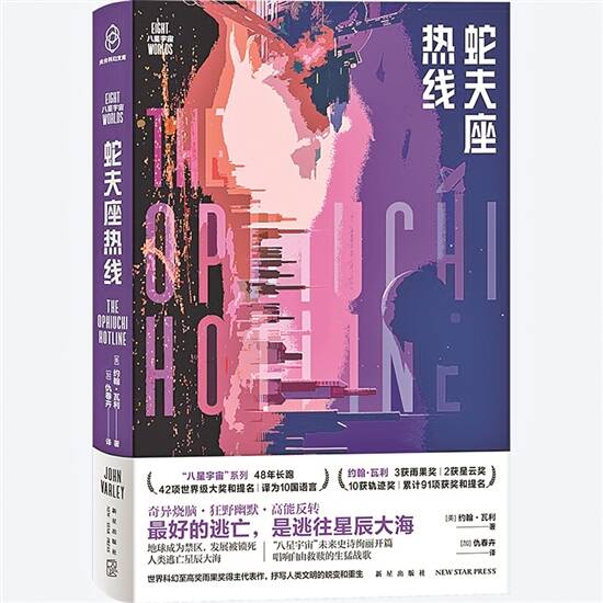 《蛇夫座热线》(约翰·瓦利) 科幻至高奖雨果奖得主约翰·瓦利代表作,他曾三获雨果奖,两获星云奖,获其他各种奖项和提名数十次,作品被翻译成二十几种语言,广受读者喜爱。代表作有“八星宇宙”系列中的《钢铁海滩》《蛇夫座热线》《按回车键》等,多以太阳系为场景,展示近未来的人类社会;此外还有“泰坦”系列、“雷与电”系列等。