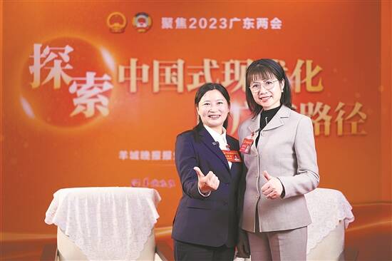 1月14日晚,两位刘红梅代表终于碰面羊城晚报记者 宋金峪 曾育文 摄