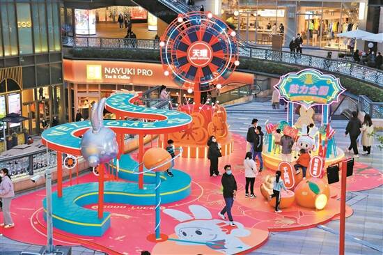 “很新奇,有一种‘跨次元’的感觉。”市民陈女士告诉记者,兔年是她女儿的本命年,商场中的瑞兔造型陈设不仅人在购物时心情愉悦,也深得自己女儿喜欢,“拍了好多照片发朋友圈!”