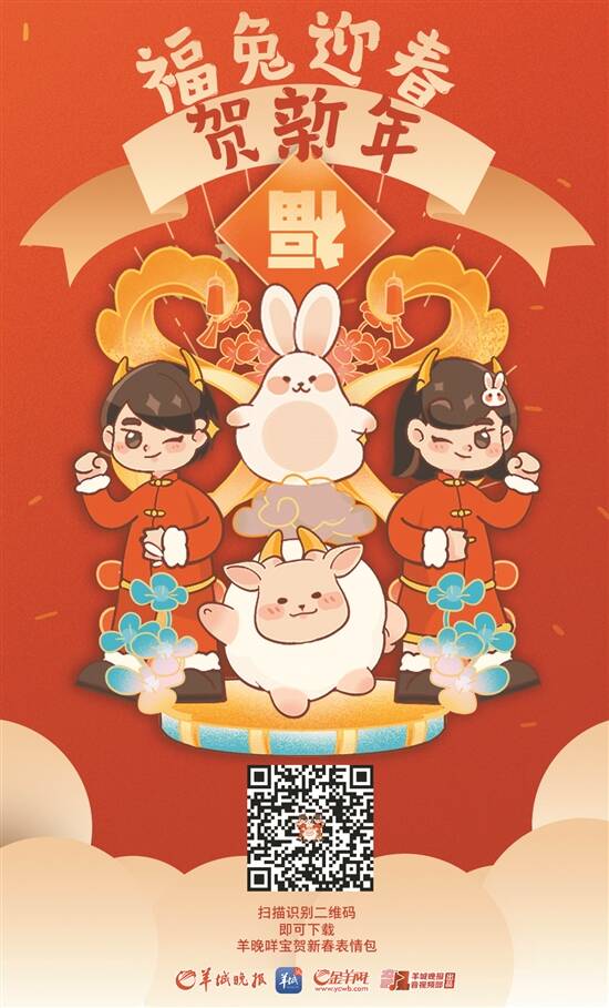 今天是除夕,距离兔年只有一天。羊晚带着新朋友“兔宝”来给世界各地的读者朋友们拜年了!请扫描识别海报中的二维码,将这套颜值高、寓意好的表情包收入囊中。