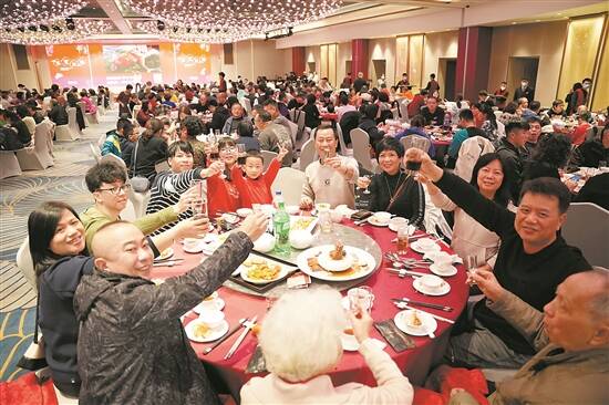 广州中国大酒店丽晶殿内,市民举杯共享年夜饭