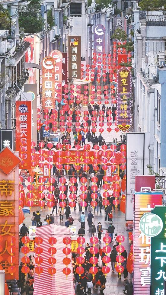 广州上下九步行街大红灯笼高高挂起,年味浓浓