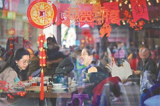 正月初一,广州北京路商圈的食肆客人满座 羊城晚报记者 周巍 刘颖颖 摄