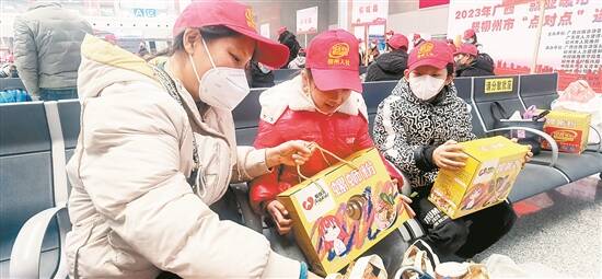 桂籍务工人员携带家乡特产,乘免费专列回广东