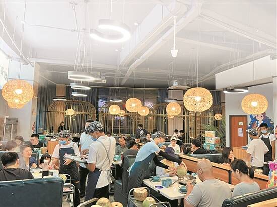 春节期间,三亚萌哒哒椰子鸡店迎来游客堂食消费热
