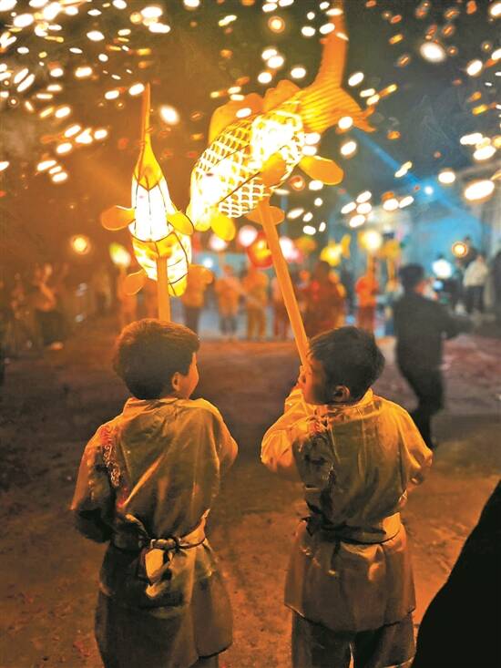 广州增城派潭镇双合寮村近日上演舞渔灯民俗表演,传承非遗文化,祈盼“年年有余” 通讯员 增宣 供图