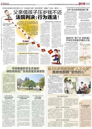 广州的一名父亲,就以资金周转名义向女儿借了3万元压岁钱,没想到结果是“刘备借荆州”,一借不还。在女儿将父亲告上法庭要求父亲还钱后,广州市海珠区法院一审判决涉案父亲借用压岁钱的行为属于借款行为,应还本息。