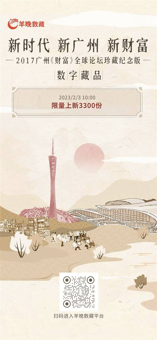 2月3日10时,《新时代 新广州 新财富》手绘纪念版数字藏品通过羊晚数藏平台发行,限量发售3300份,用户可通过积分免费兑换领取。敬请关注“羊晚数藏”微信公众号或者通过羊城晚报羊城派APP、金羊网、手机金羊网等渠道,进入“羊晚数藏平台”,了解后续活动与福利。