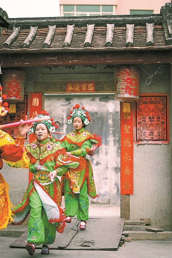 装扮为穆桂英、花木兰等巾帼人物的西门女子英歌队队员们 蔡嘉鸿 摄