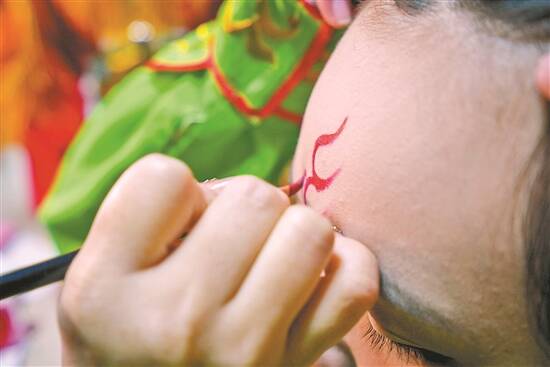 额头上的“火”字符号,象征着女子英歌队的团结精神 蔡嘉鸿 摄