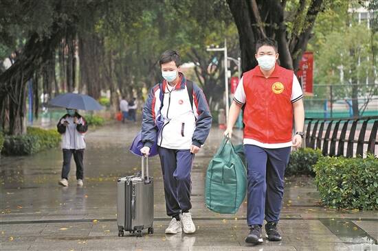 “这次开学返校我的第一感受就是——温暖!返校的时间段刚好下着雨,在学校和志愿者同学的帮助下,我才能顺利将行李搬到宿舍。在这里我要为学校的贴心、志愿者的守护点个赞。”广州协和学校高一李同学说。