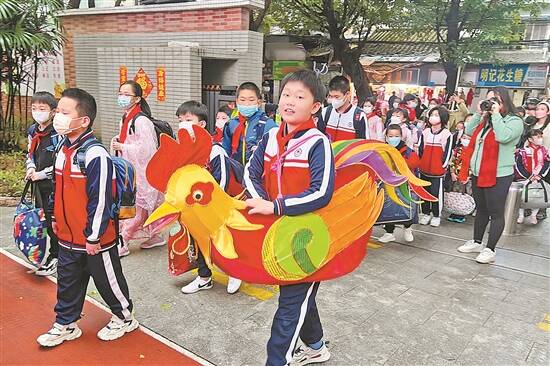 华南师范大学附属小学的开学典礼上,翻转腾跃的一条“金龙”将气氛推向了高潮。据介绍,该校开设了33项非遗课程,打造校园特色,“龙舞文化”课程班就是其中之一。