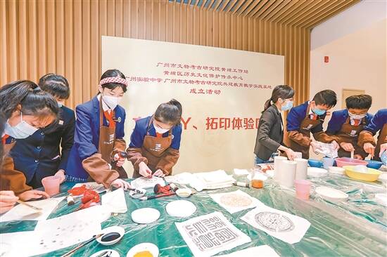 广州实验中学学生体验文物拓印手工 羊城晚报记者 蒋隽 徐振天 摄