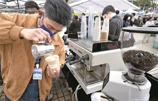 咖啡师在咖啡文化集市展位上冲调咖啡 周华东 摄