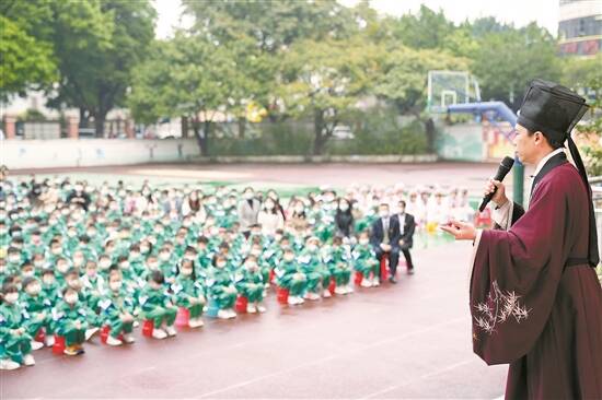作为广府庙会校园分会场,珠光路小学在开学典礼上呈现了丰富的民俗文化活动 羊城晚报记者 周巍 摄