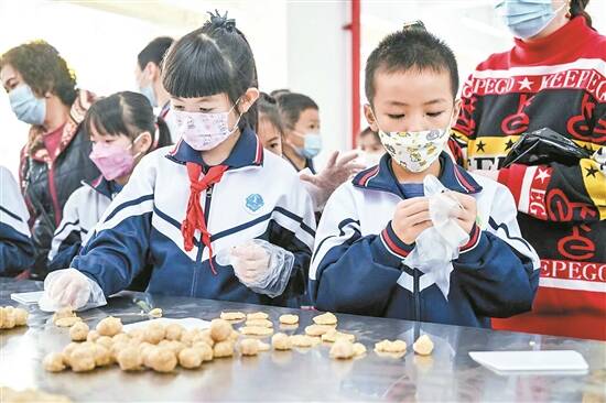 海珠区鹤鸣五巷小学,学生制作小凤饼 校方供图