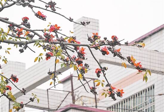 羊城晚报讯 记者梁怿韬报道:新春过后的广东大部,呈现春暖景象。有广州市民发现,市内个别木棉已经开花。