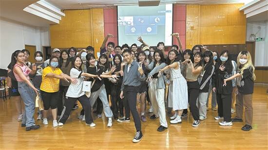 他开设的《欧美流行音乐歌曲鉴赏》这一通识选修课还“火了一把”,原定40人的课一放出名额便被学生抢光,最后报名人数近400人。课上,他将耳熟能详的英文歌曲作为教学案例,分析其中的发音技巧和知识点,并通过亲身演绎歌曲引导大家跟唱学习。这门课的结课考核是每人当众演唱一曲,经过一学期,不少学生已然克服“社恐”心理,悉数登场,成为享受舞台的“麦霸”。他说:“这门课更像是一个‘大型K歌现场’,我让学生们‘放飞自我’,在合唱中享受学英语的乐趣,通过音乐凝聚一起。”