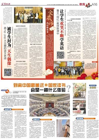 陈渭中惊喜地发现,不少同学是他的粉丝,有些课还坐满了旁听生,课后如同“粉丝见面会”。临床医学专业的霍宝珊同学说,“陈老师脑子里仿佛有用不完的幽默细胞。”广电专业李欣谕同学表示,她对英语的浓厚兴趣正是源于“陈老丝”的视频,此前顺利抢课如同“追星成功”。“陈老师的每节课都会有好玩的互动小游戏,以此对我们英语口语能力进行测试与锻炼,课堂和他的视频效果一样,全程欢笑不断。”受到学生们的喜爱,陈渭中直言,“这给了我更大的挑战与责任,要继续做得更好。”