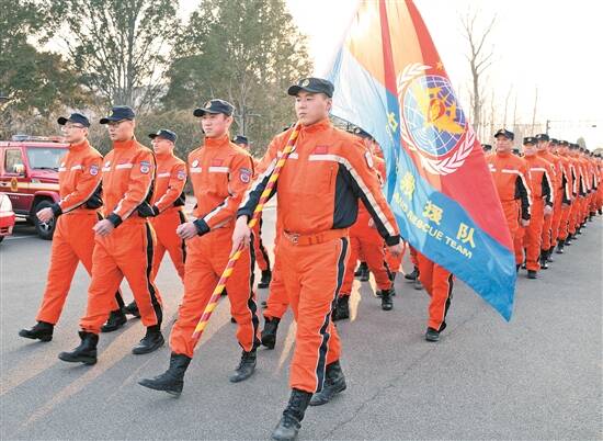 7日下午,中国救援队乘国航包机从首都机场出发飞赴灾区 新华社发