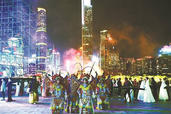 “粤韵飞扬 乐美湾区——粤港澳大湾区(广州)文化周”开幕文艺演出,以城市地标为舞台背景,以岭南文化为纽带,以广东音乐为载体,粤港澳艺术家同台展现大湾区同根同源的人文风采 羊城晚报记者 邓勃 摄 (资料图片)
