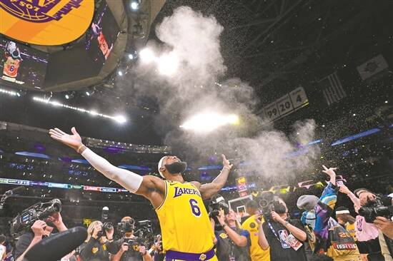 詹姆斯显然也明白这一点,虽然他不止一次强调自己对于历史得分王这个头衔没有特殊的追求,但当这项重磅荣誉真切地摆在面前时,没有人能抵挡这样的魔力。詹姆斯从比赛一开始就展现出了不一样的竞技状态,他主动冲击篮下,一次又一次地扛着比他年轻十岁甚至更多的球员上篮得分,就像他过去20年无数次做到的那样。在上半场结束时,詹姆斯已经得到了20分,解说员们已不再讨论詹姆斯能否在本场完成超越,而是在预测他会以一种什么样的方式完成超越。