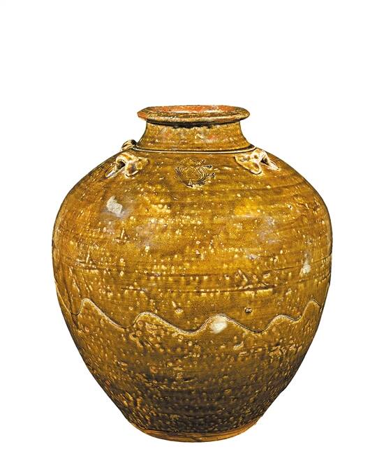 各式各样的大小盆罐、执壶军持等是奇石窑和文头岭窑的重要外销产品。此类酱釉大罐特征明显,广泛发现于中国南海海域到东南亚海域沉船船货中,以及我国广州、香港以及新加坡等古代海上丝绸之路上的贸易港口遗址。在两窑烧制的“南海I号”同类酱釉大罐中,奇石窑的罐肩多有刻印字款和印花纹年号吉语,文头岭窑则多见姓氏宅号酒香等字款。