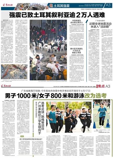 在走访中,多所中学初三体育科备课组长向记者表示,学校在开学第一周对学生身体健康情况进行了摸查,约八成学生已经感染过新冠病毒,感染时间大多在一个月前。中长跑和游泳变成选考项目后,根据广州体育中考的选项,大部分学生倾向于从足球、三级蛙跳、立定跳远、跳绳四个项目中选考。